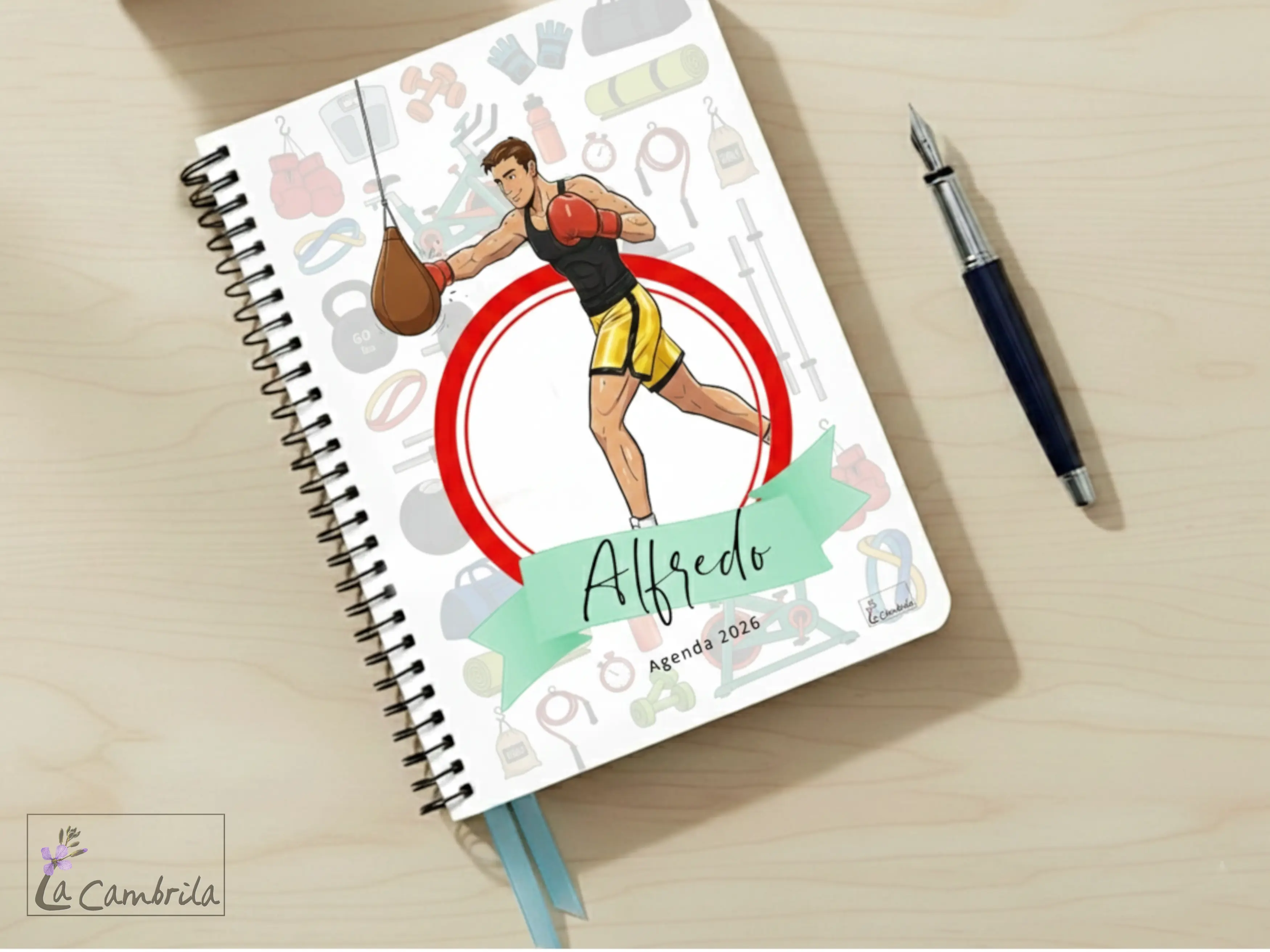 Agenda personalizada |para amantes del boxeo | Libretas personalizadas | para amantes del boxeo | Puntching ball | Tapas duras o blandas | Espiral | Día vista o semana vista | hombre, chico, masculino.