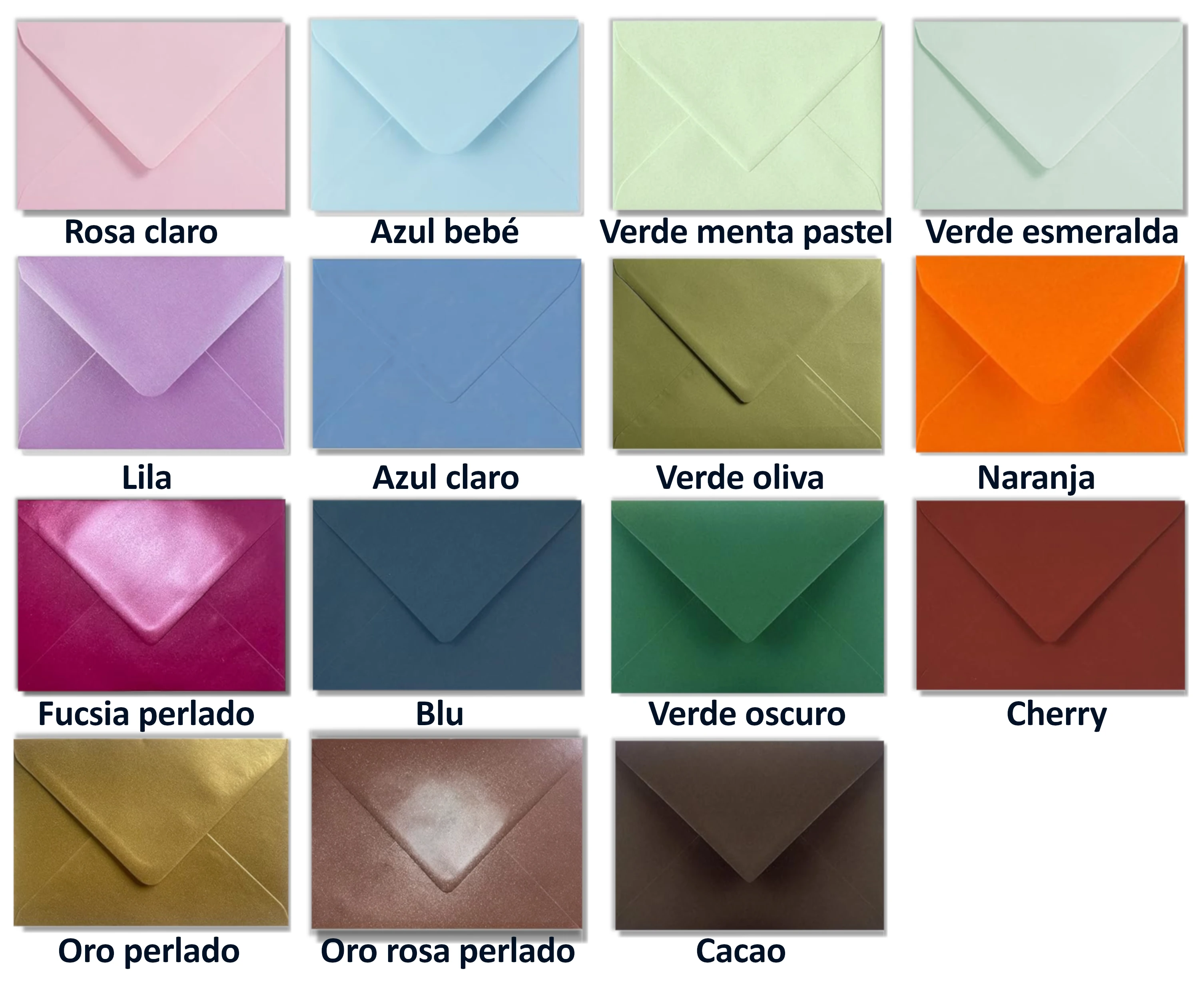 También tienes a tu disposición sobres de colores. Estos sobres no están realizados en mi taller, son comprados ya manufacturados.