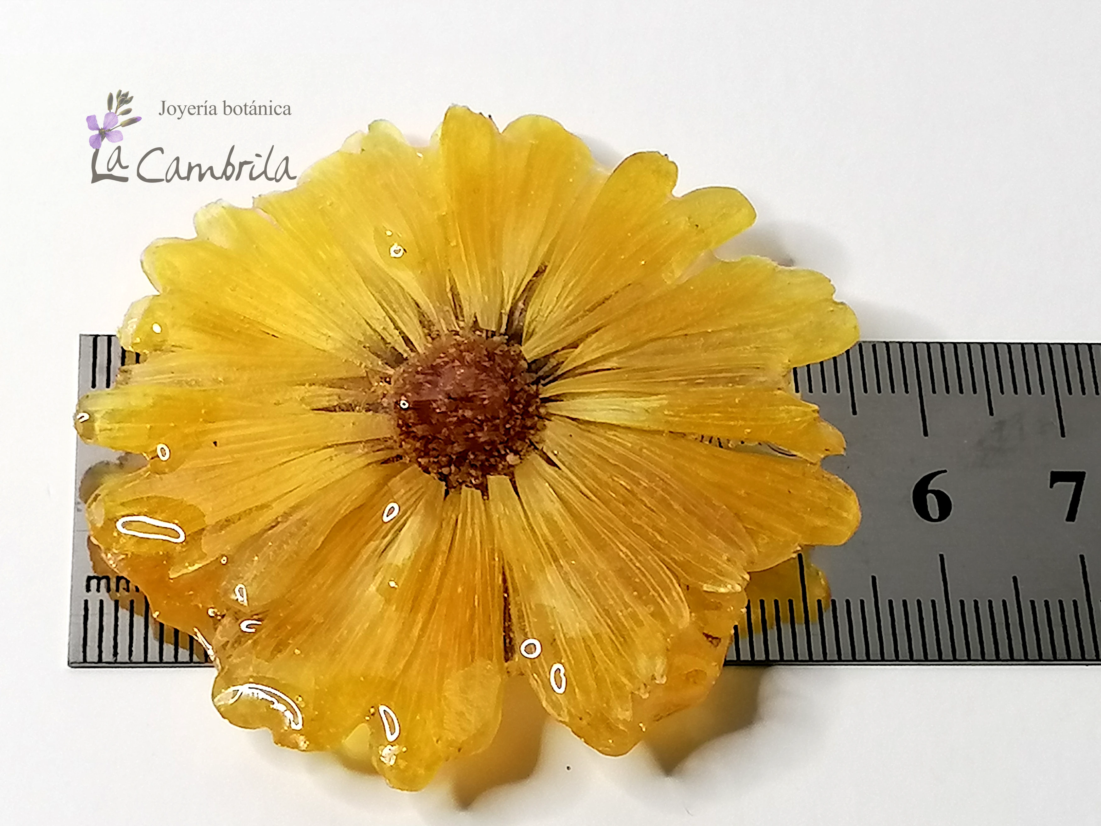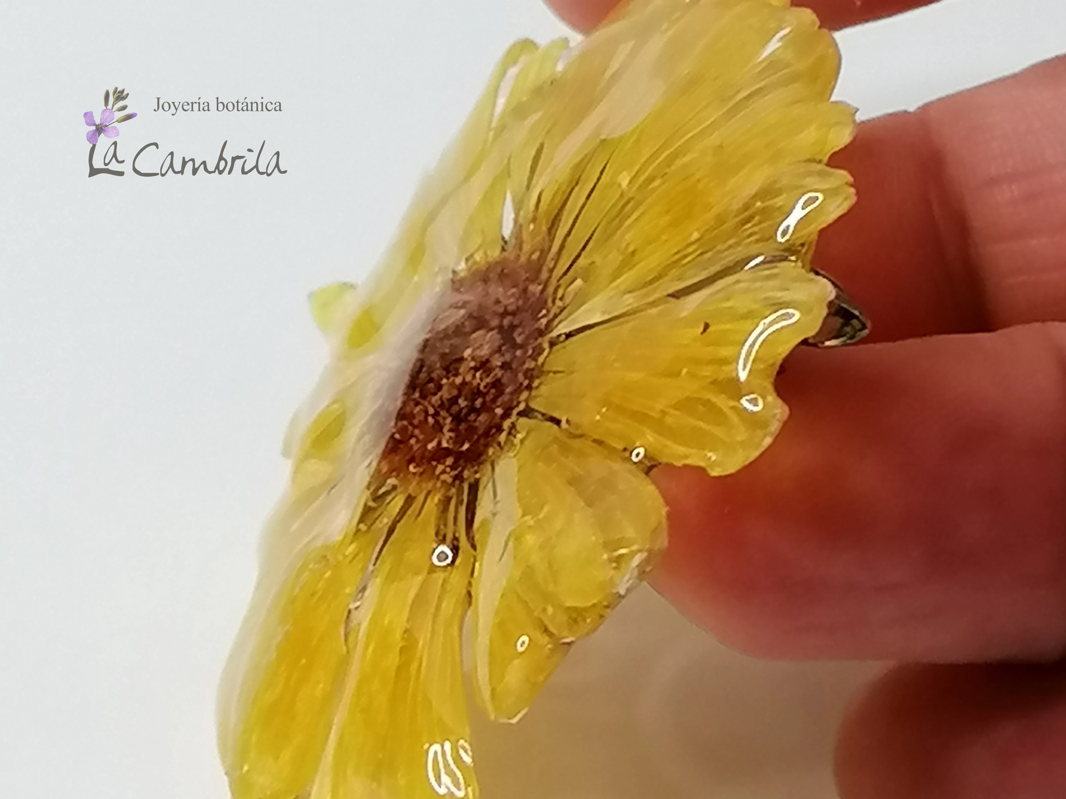 Regalar (o regalarse) este broche de caléndula en resina es entregar un pedacito de naturaleza que no se marchita. Es el detalle perfecto para quienes valoran la joyería botánica hecha en España y buscan accesorios que se salgan de lo industrial. En La Cambrila, cada pieza cuenta una historia de paciencia y respeto por el medio ambiente.