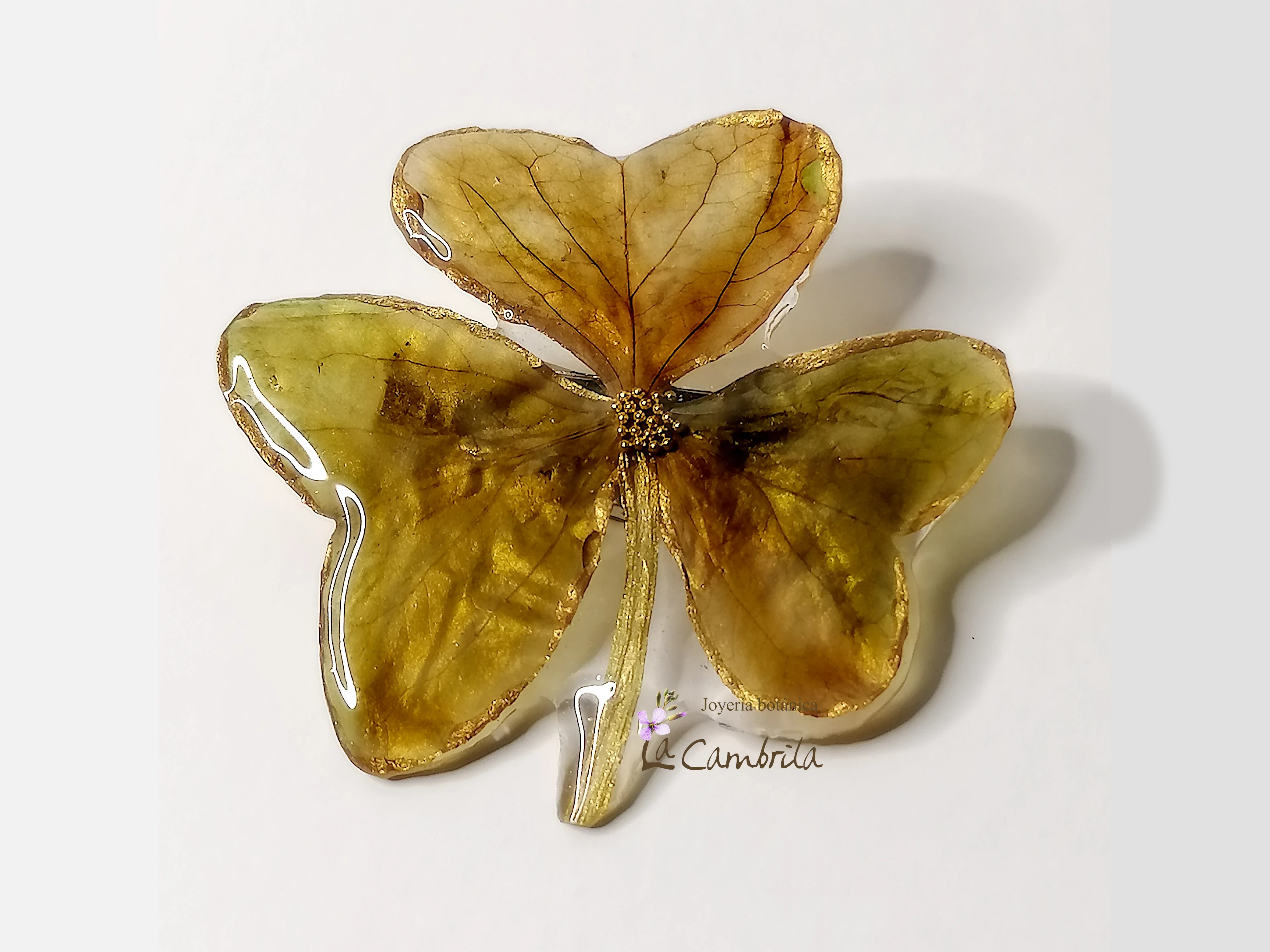 Broche de Trébol Natural Preservado | Joyería Botánica La Cambrila