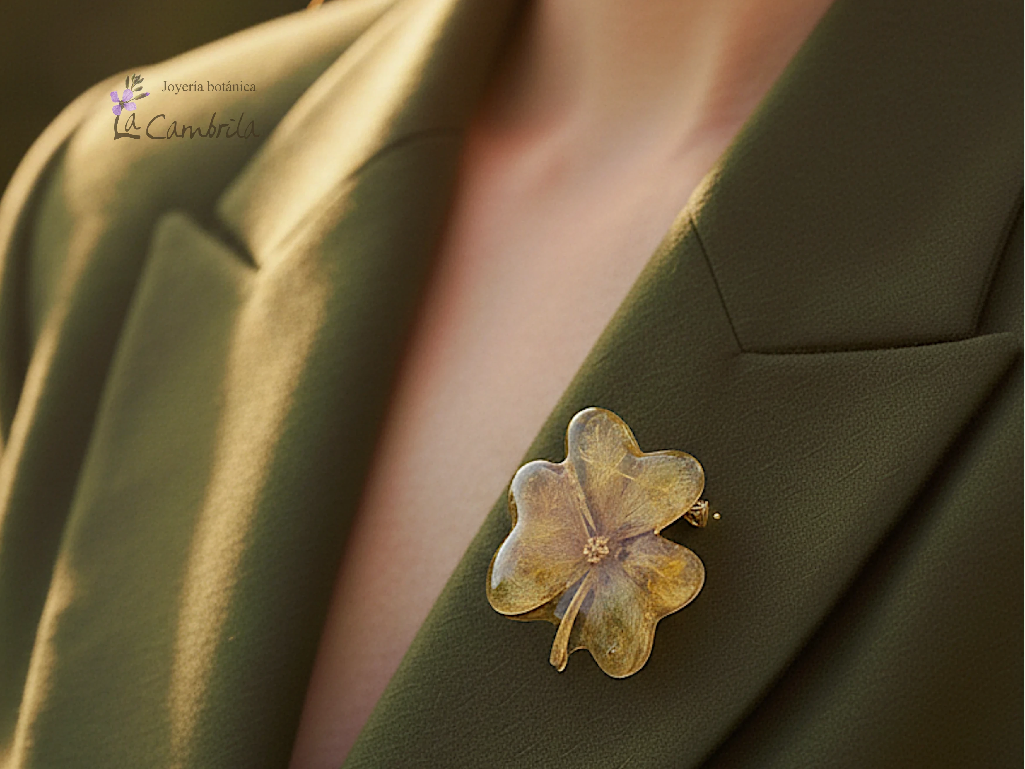 En un mundo de accesorios industriales, el broche de trébol en resina destaca por su autenticidad. Al ser un producto de joyería botánica, cada pieza es irrepetible: no existen dos tréboles iguales en la naturaleza, por lo que tu broche será exclusivo para ti.