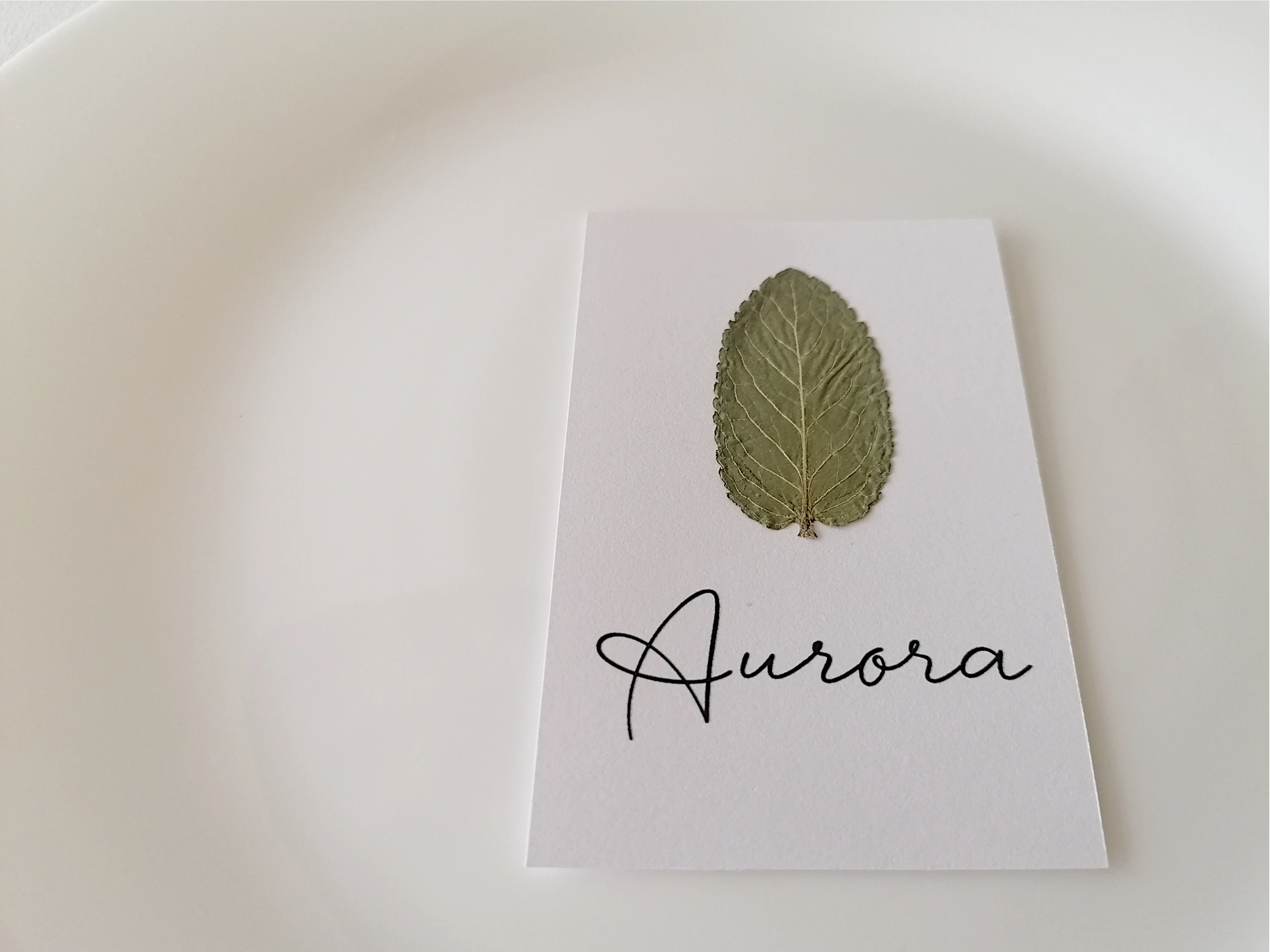 He diseñado estos marcasitios pensando en la sencillez y en el poder de lo auténtico. La hoja de yerbabuena es la protagonista, con sus tonos verdes que me recuerdan a la naturaleza en su estado más puro. Combina a la perfección con la caligrafía elegante de cada nombre, creando un conjunto que es a la vez sofisticado y lleno de encanto. Si sueñas con una boda bohemia, una comunión con aire campestre o un evento que respire naturalidad, estos marcasitios son la elección perfecta para ti. Cada hoja es única, lo que garantiza que tu evento tendrá ese toque exclusivo y artesanal que buscas.